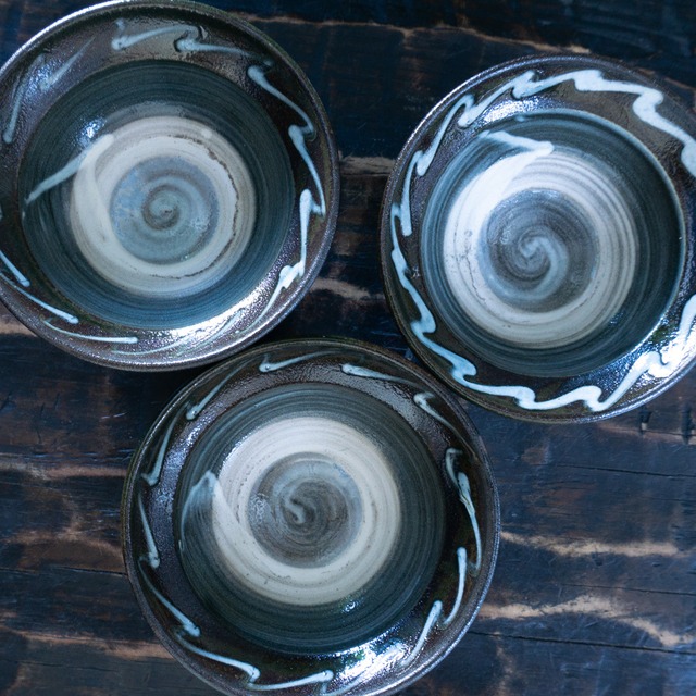 小鹿田焼 坂本創 三寸小鉢 蛇の目 イッチン