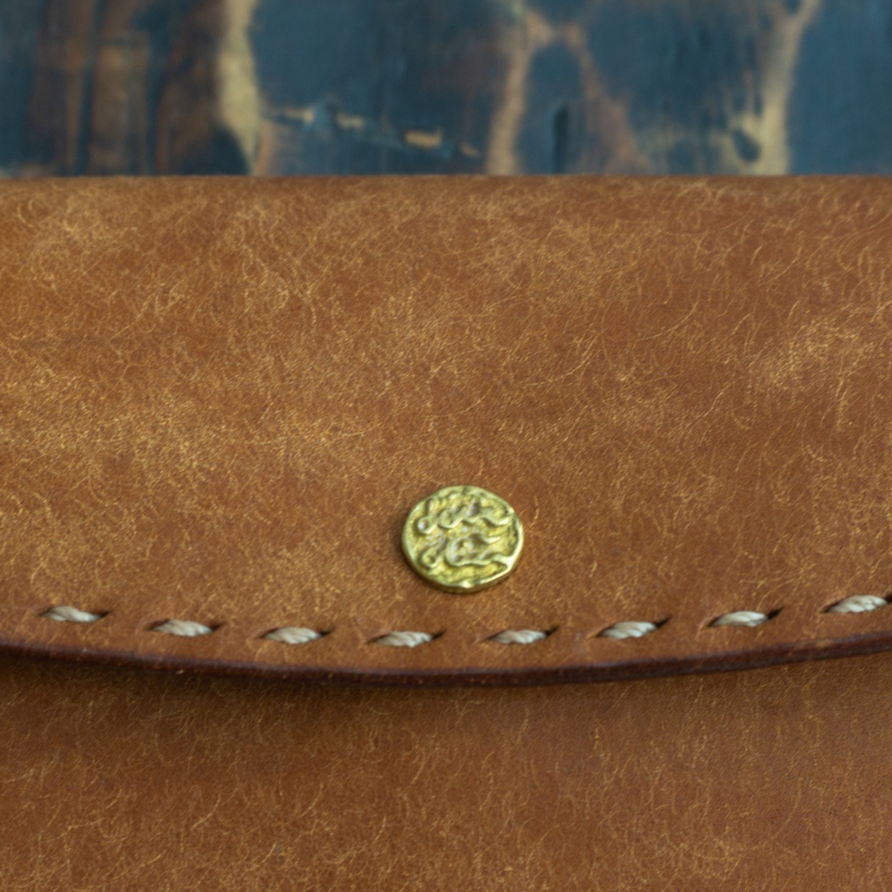 両端を縫わずに袋の中央を金具で留める形は、職人の手作りだからこそできる形。
