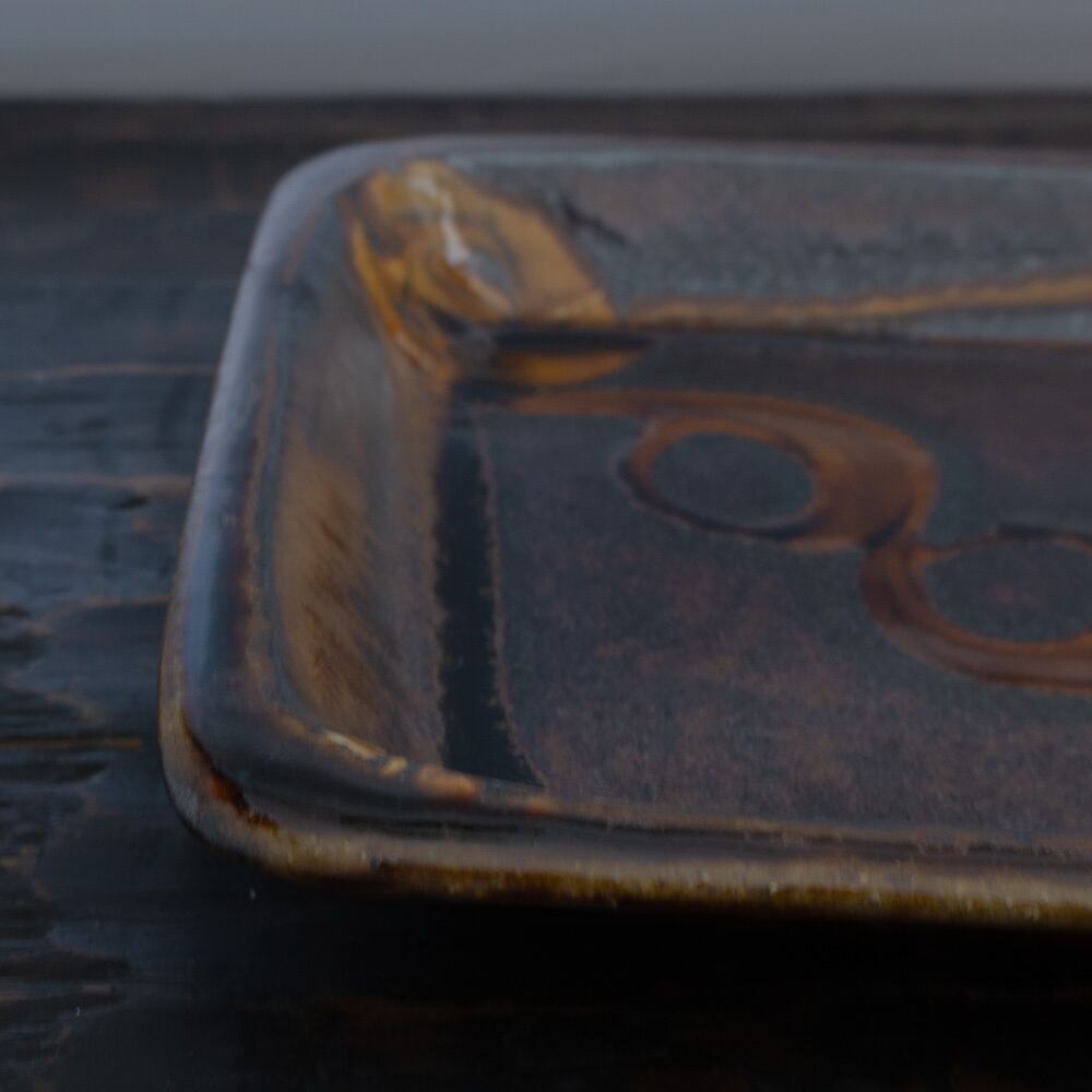 井上尚之 スリップ正方皿 飴釉 1-11 B