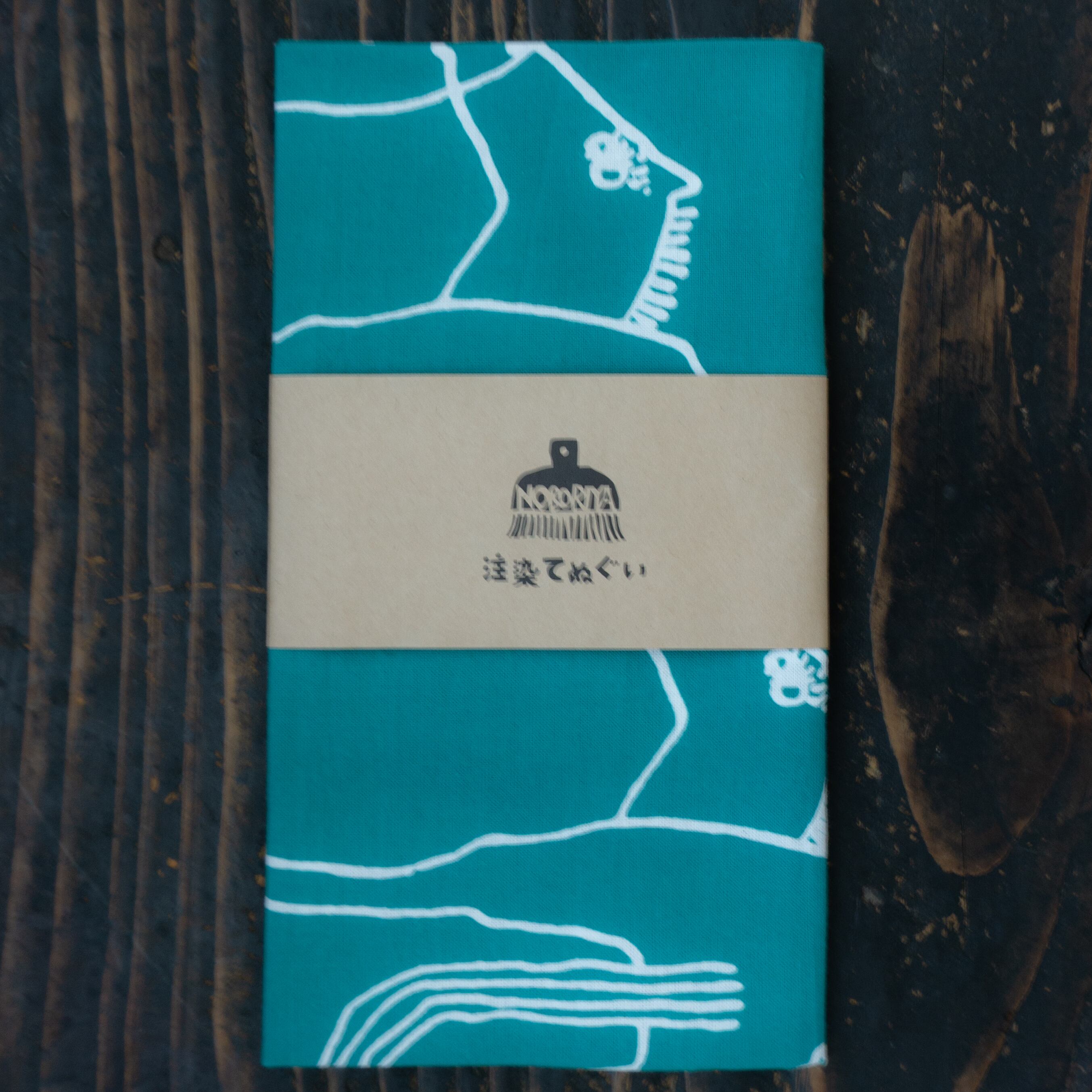 この手ぬぐいは、「注染(注ぎ染め)」という日本の伝統技法で染められています。