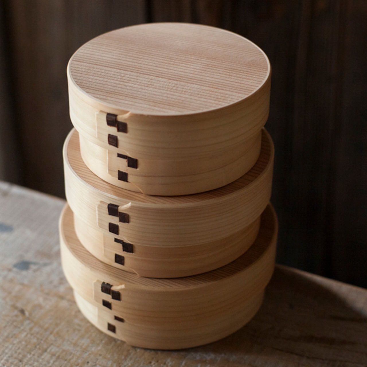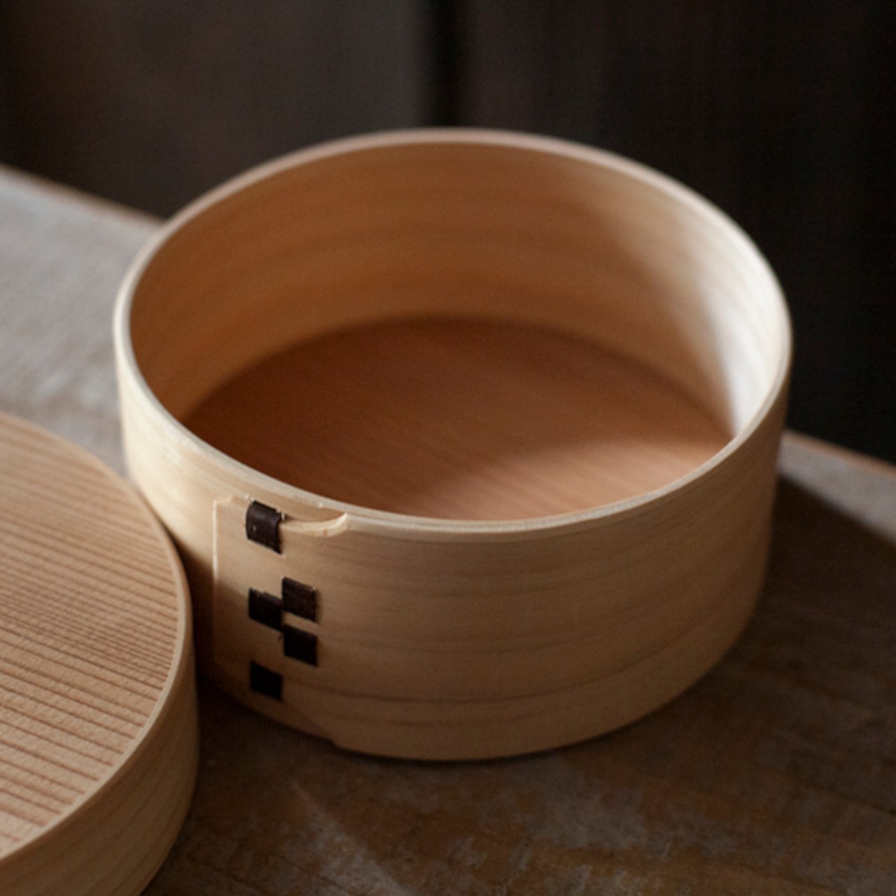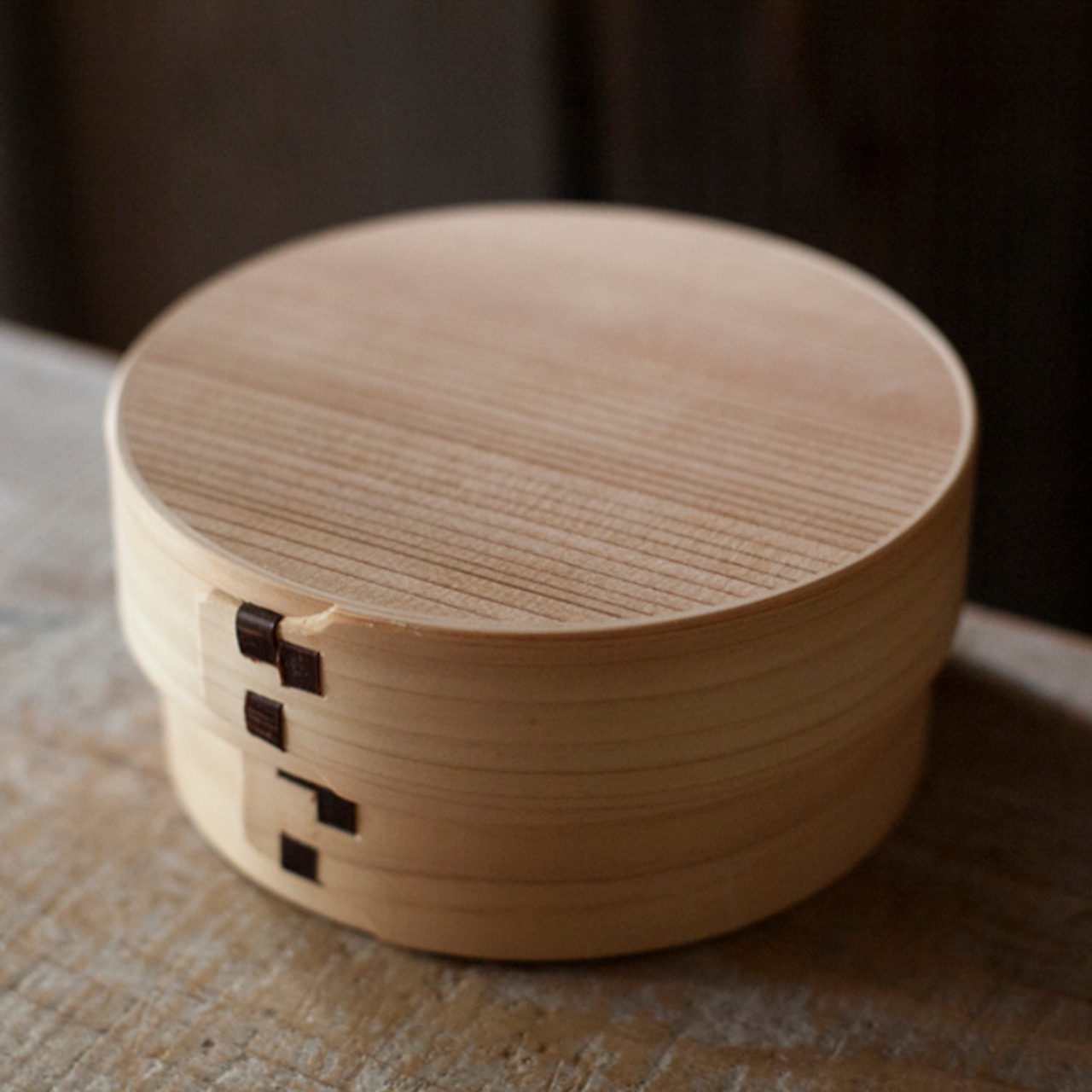 木樵(きこり)が愛用していた曲げ輪の弁当箱を