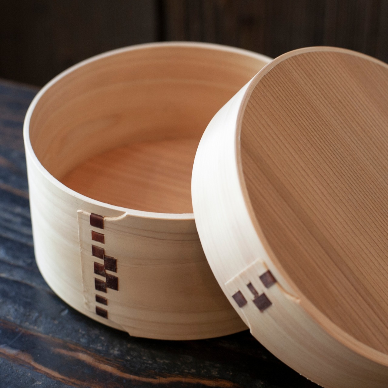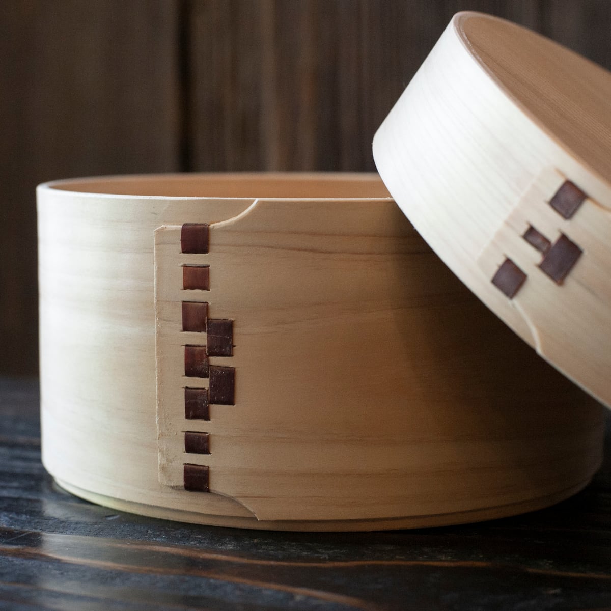 木樵(きこり)が愛用していた曲げ輪の弁当箱を