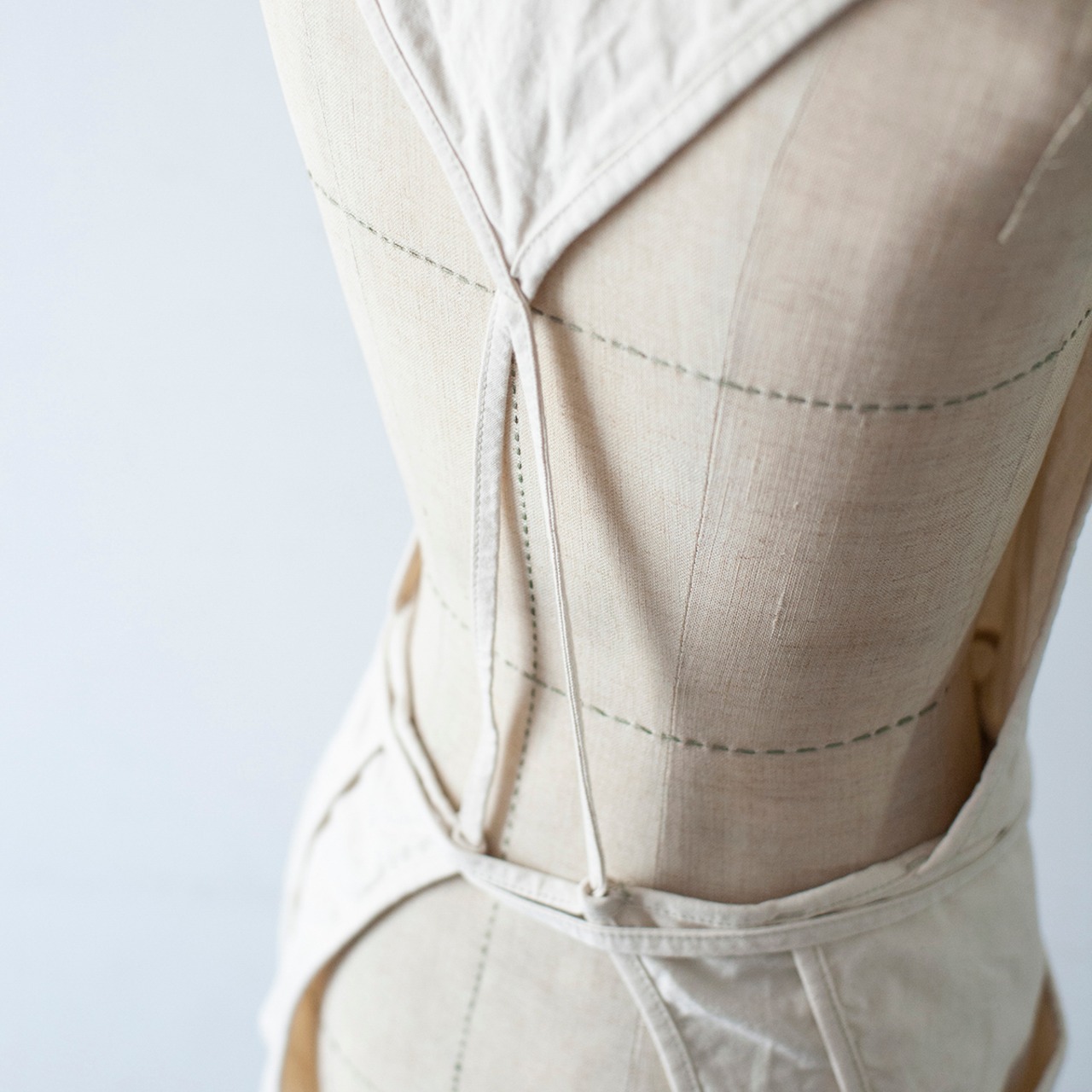 後ろは紐で調整できるようになってますので、ご自分の体にちょうどいい具合に調整できます。