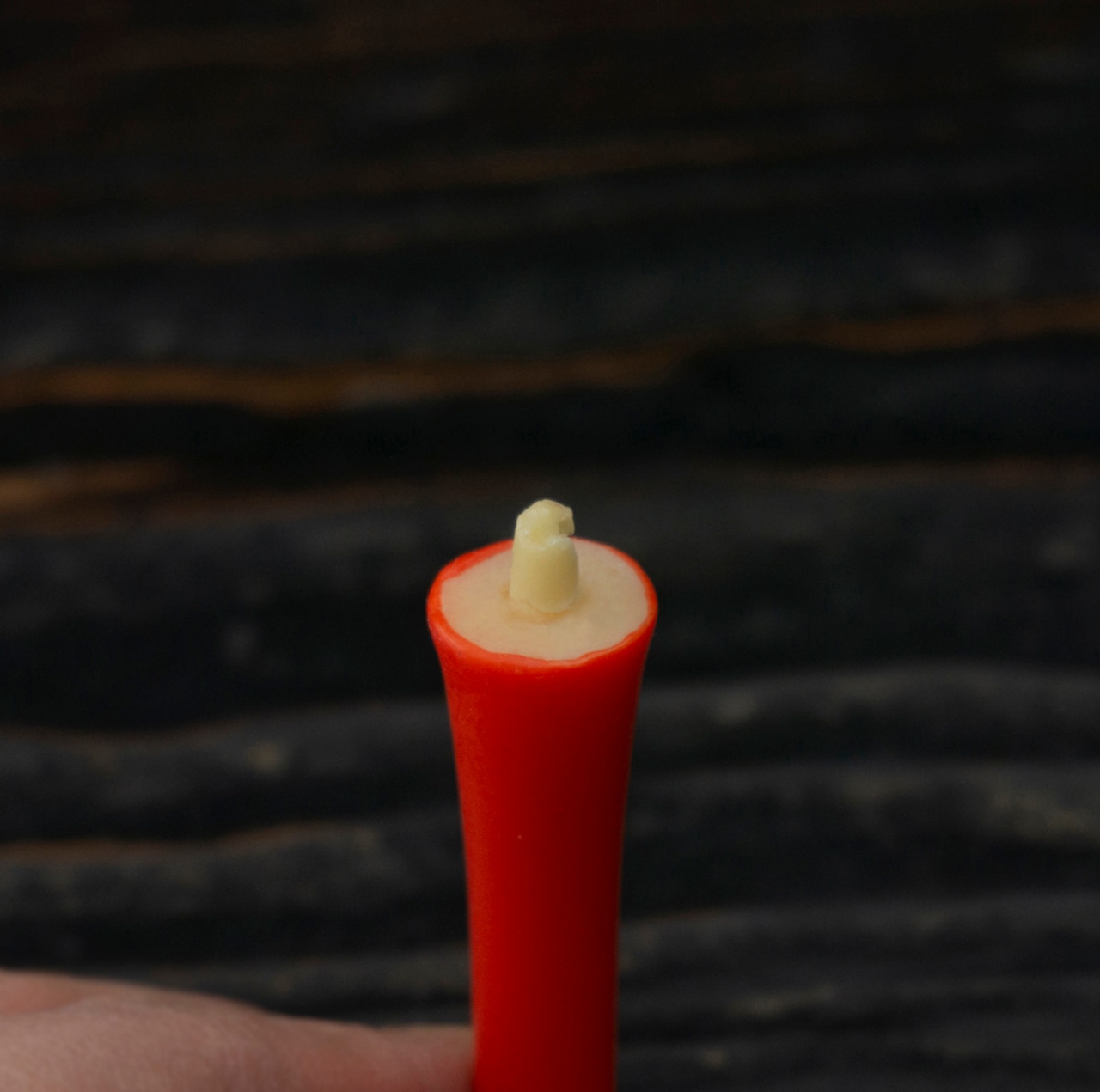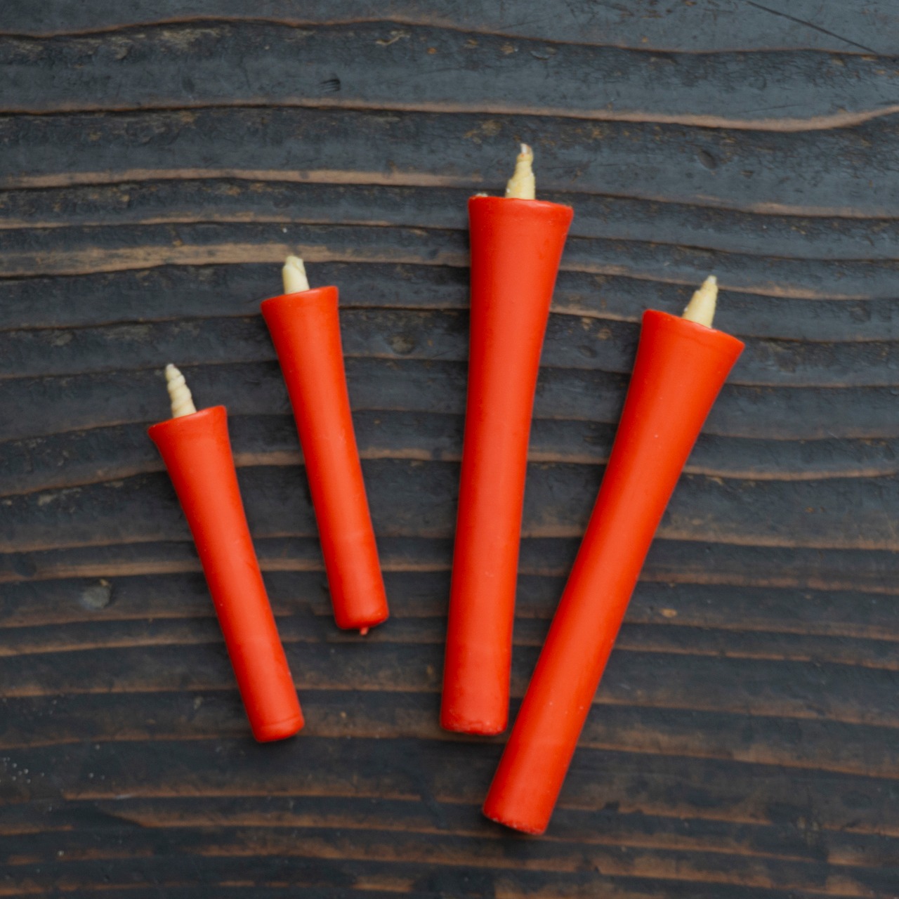 櫨ろうそくと比べて、 蝋が硬く、燃焼時間が長いのが特徴です。