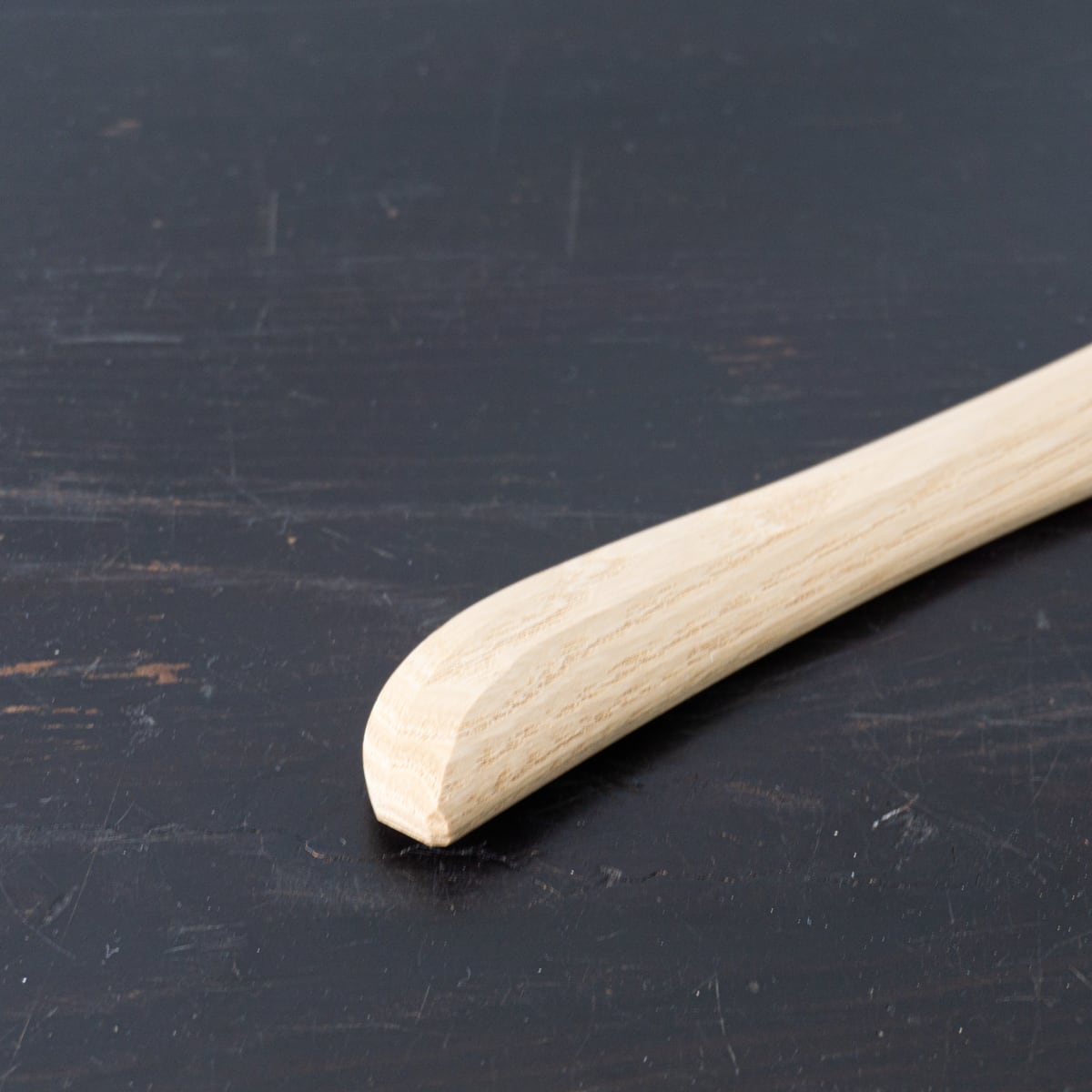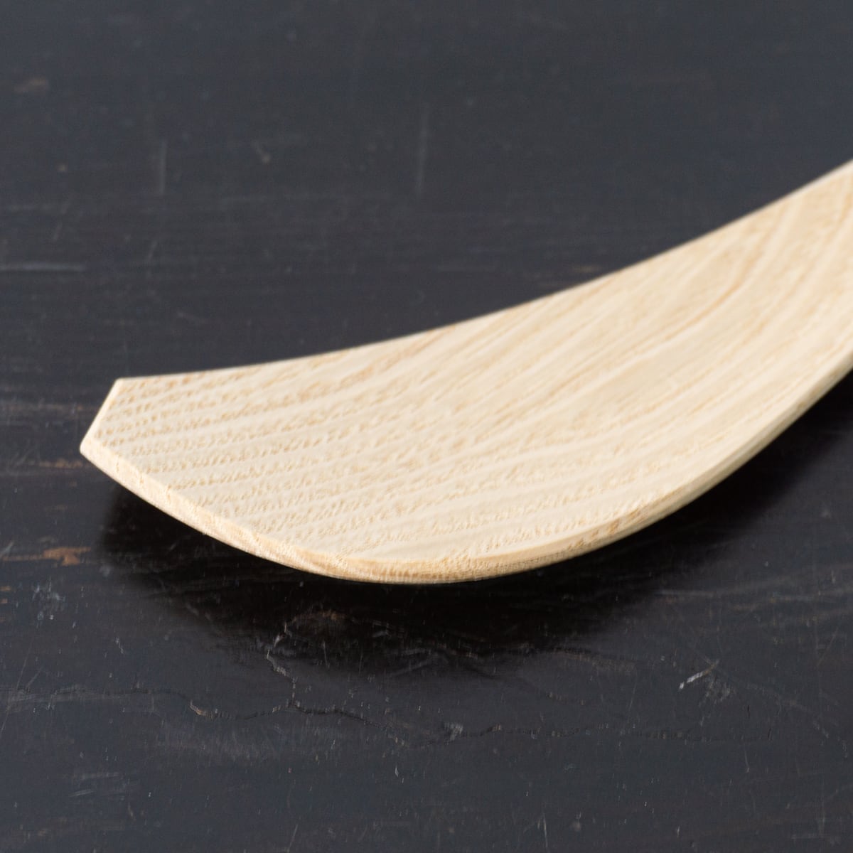 大久保ハウス木工舎の代名詞ともなりつつある木のヘラ。右利き用と左利き用があり、ブーメランのようにラウンドした形状は【混ぜる・すくう・ひっくり返す】の三拍子を叶えます。