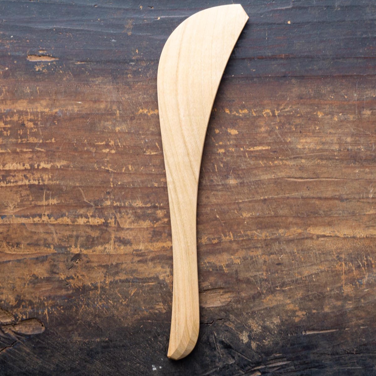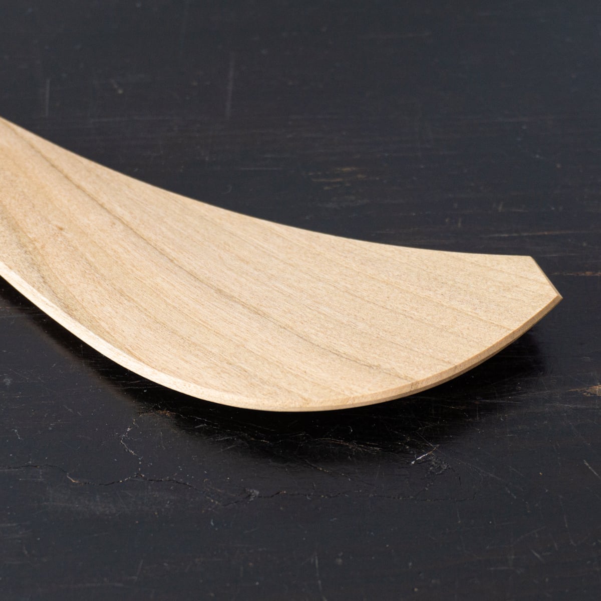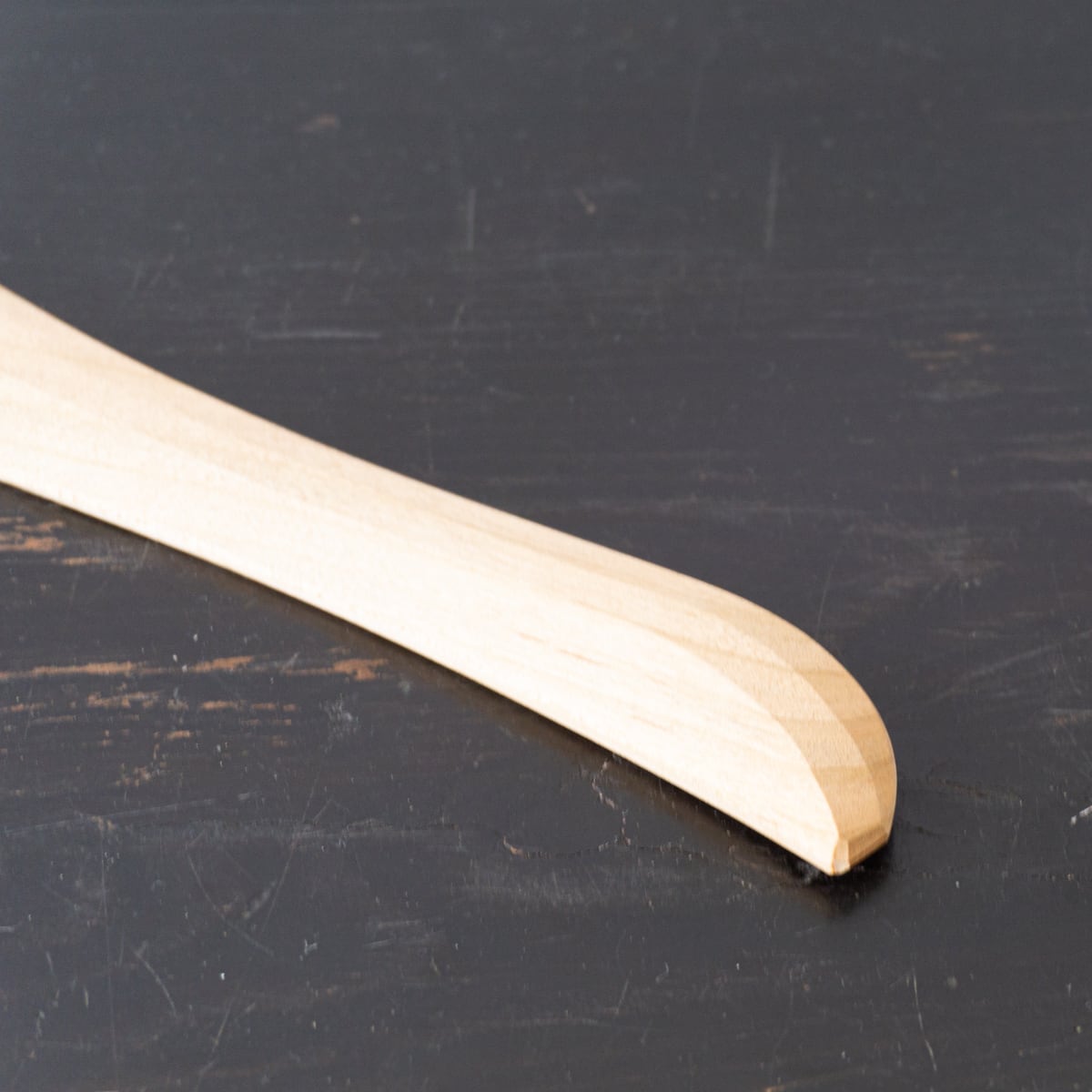 大久保ハウス木工舎の代名詞ともなりつつある木のヘラ。右利き用と左利き用があり、ブーメランのようにラウンドした形状は【混ぜる・すくう・ひっくり返す】の三拍子を叶えます。