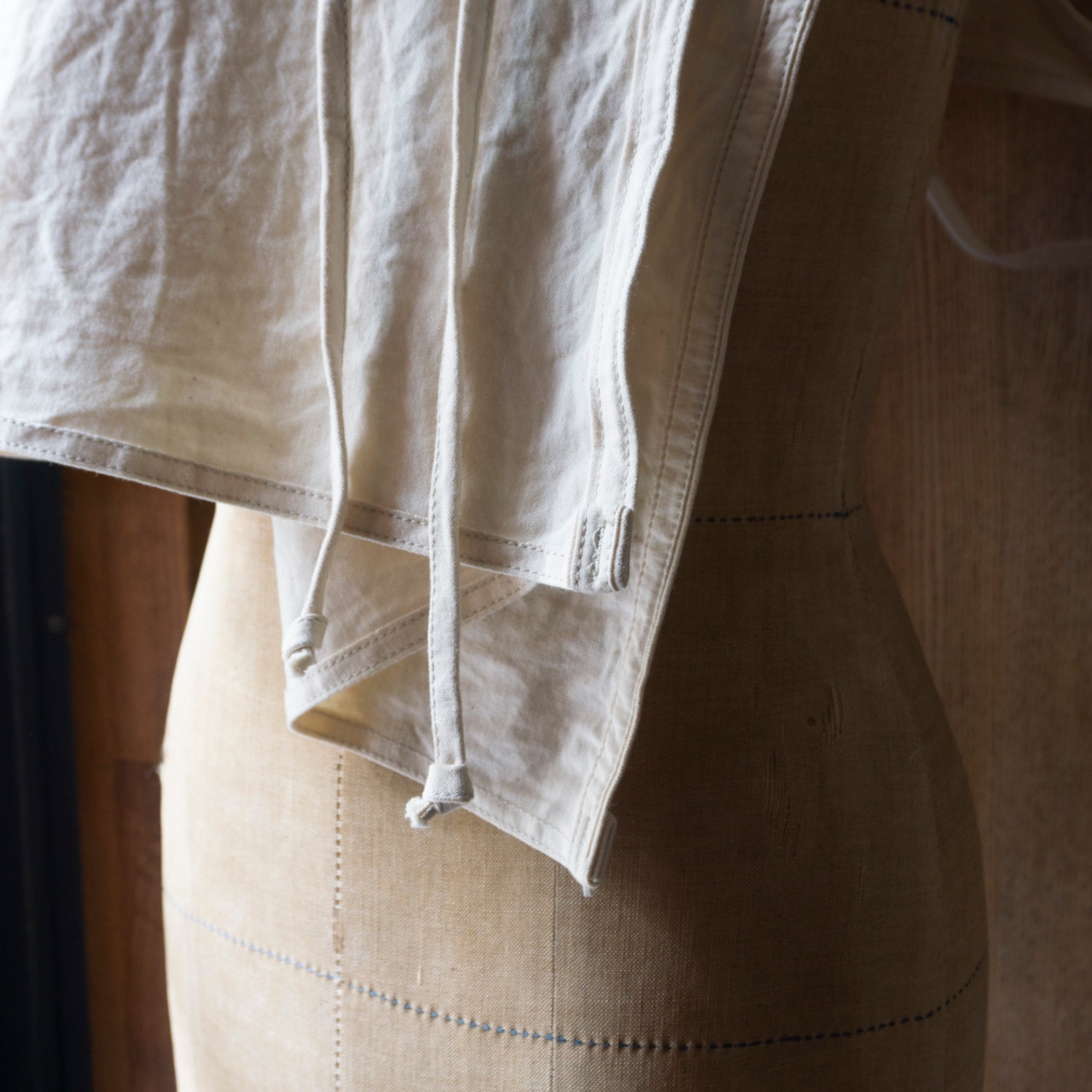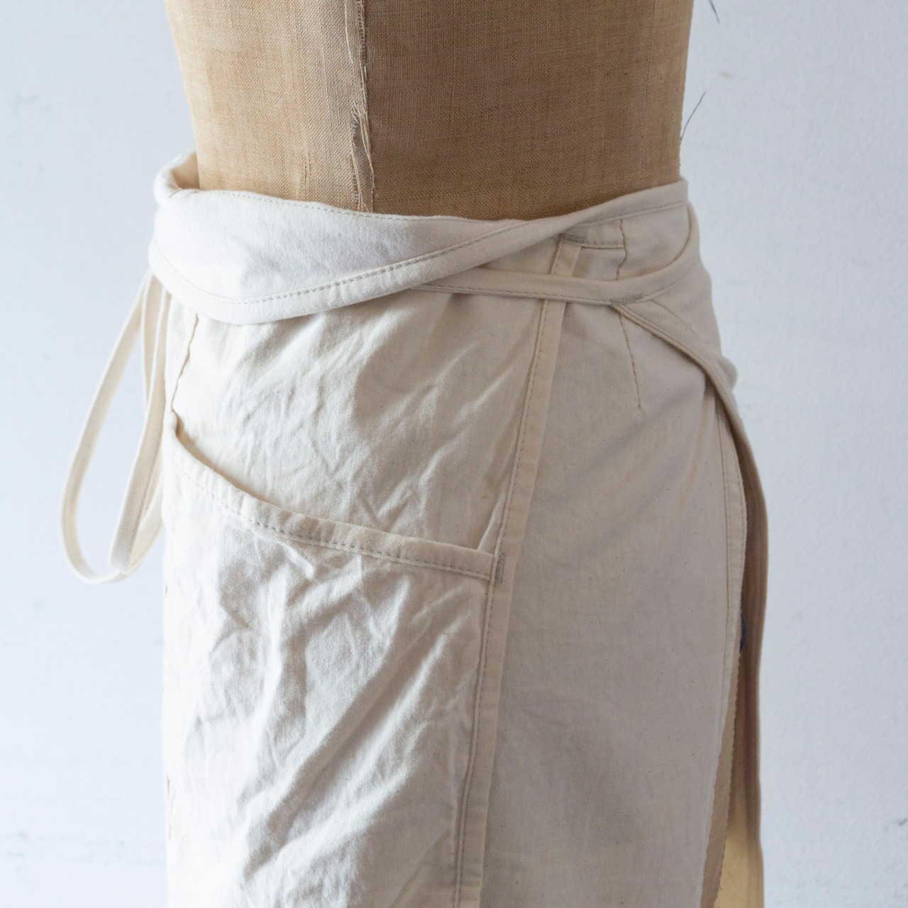 しかし腰エプロンについては、結び目が上にずれてしまうのが難点でした。
