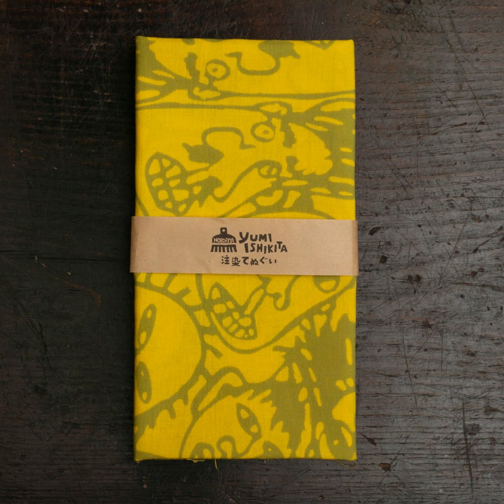 この手ぬぐいは、「注染(注ぎ染め)」という日本の伝統技法で染められています。