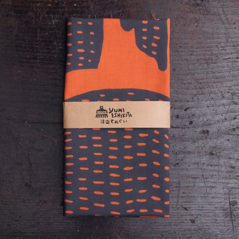 この手ぬぐいは、「注染(注ぎ染め)」という日本の伝統技法で染められています。