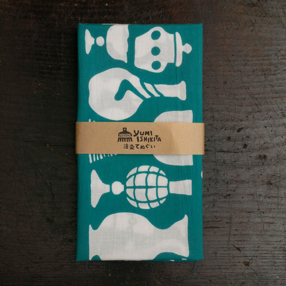石北有美 注染てぬぐい 吹きガラス 浅葱
