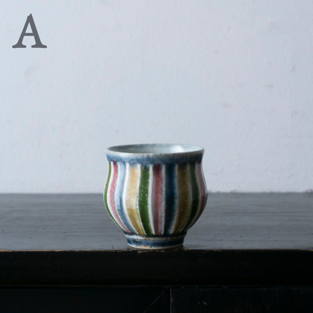 灰釉・呉須・辰砂・鉄釉・緑釉と多彩な色を使い分け、鎬・象嵌・