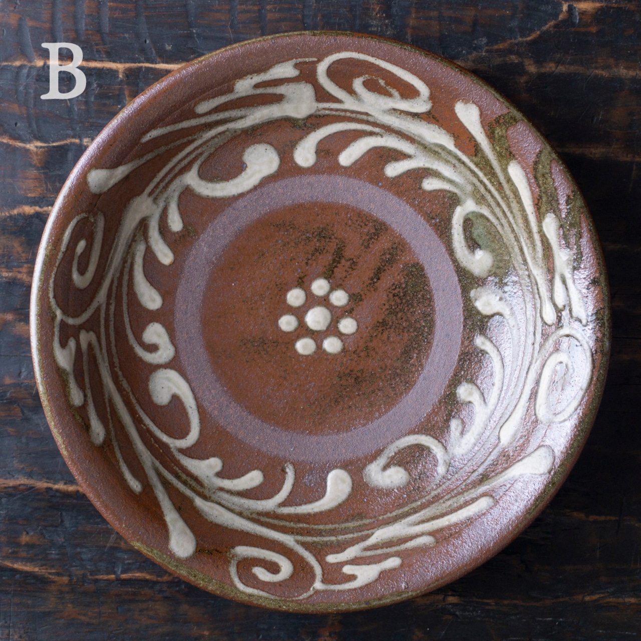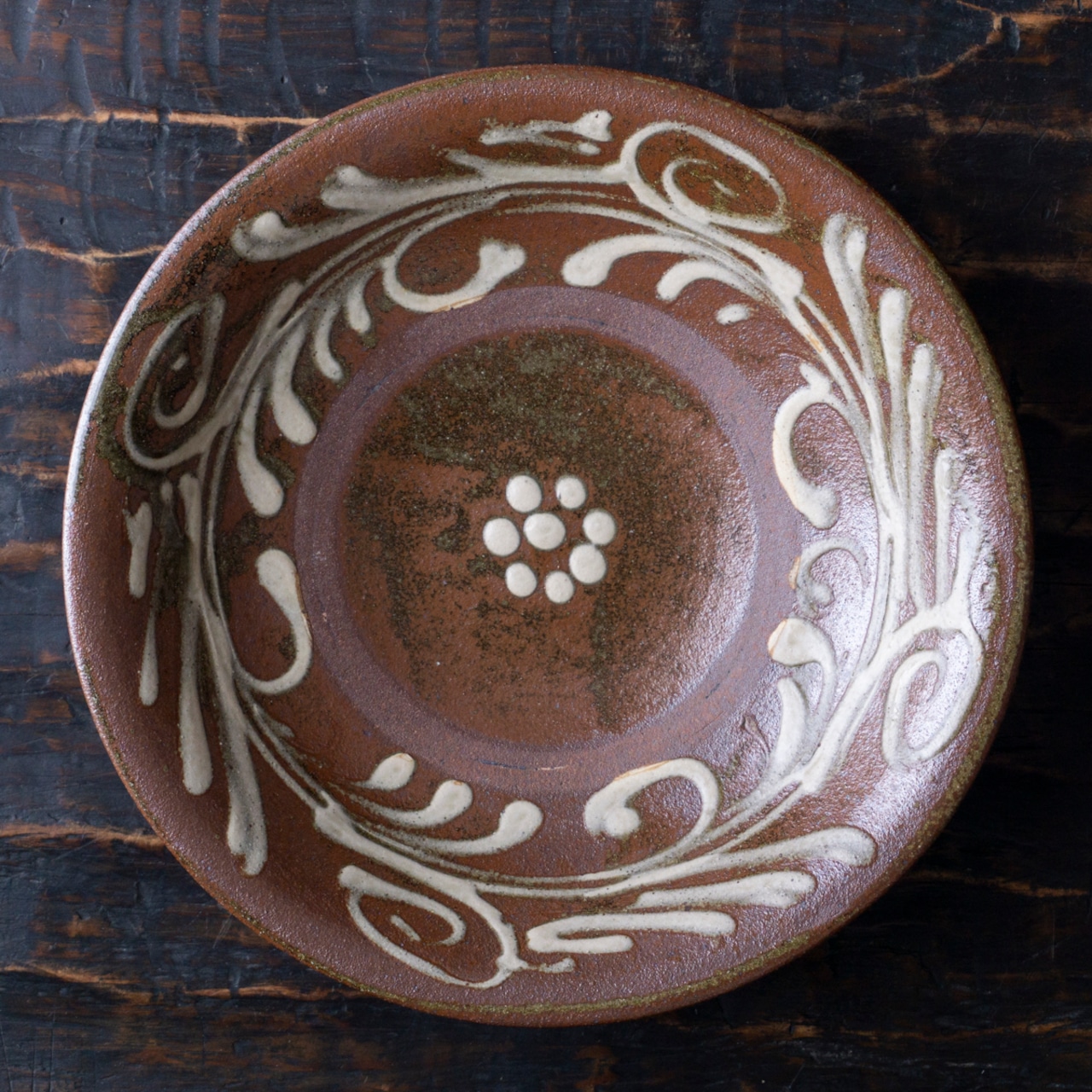からや窯 登川均 皿 8寸 イッチン 唐草/梅紋 2