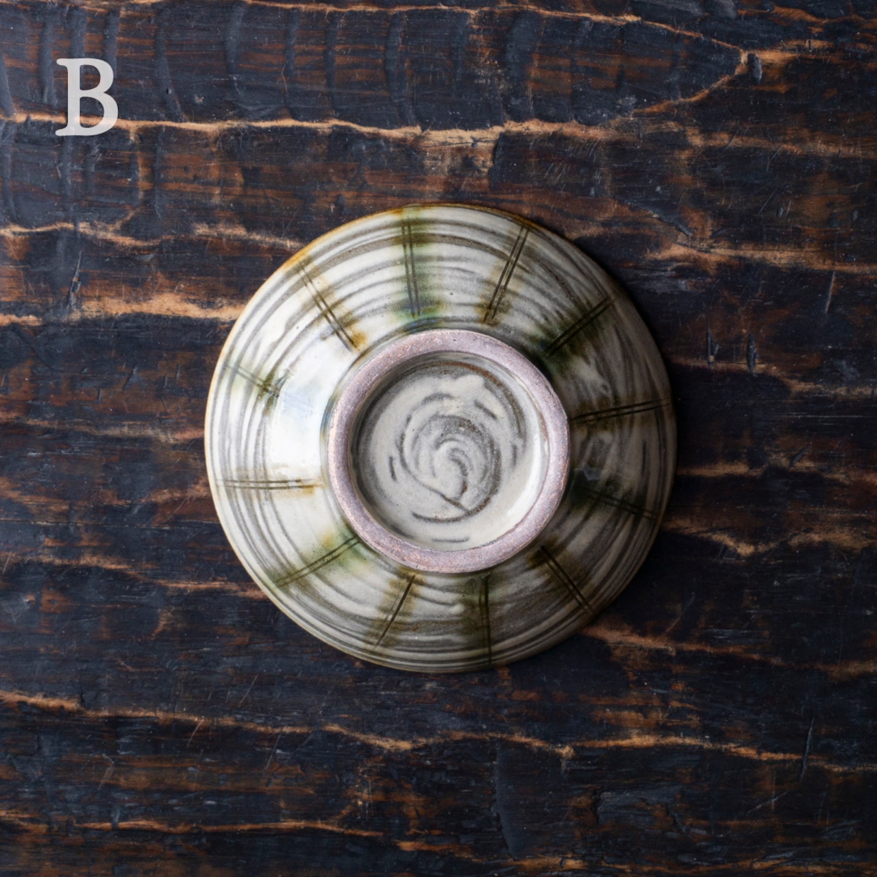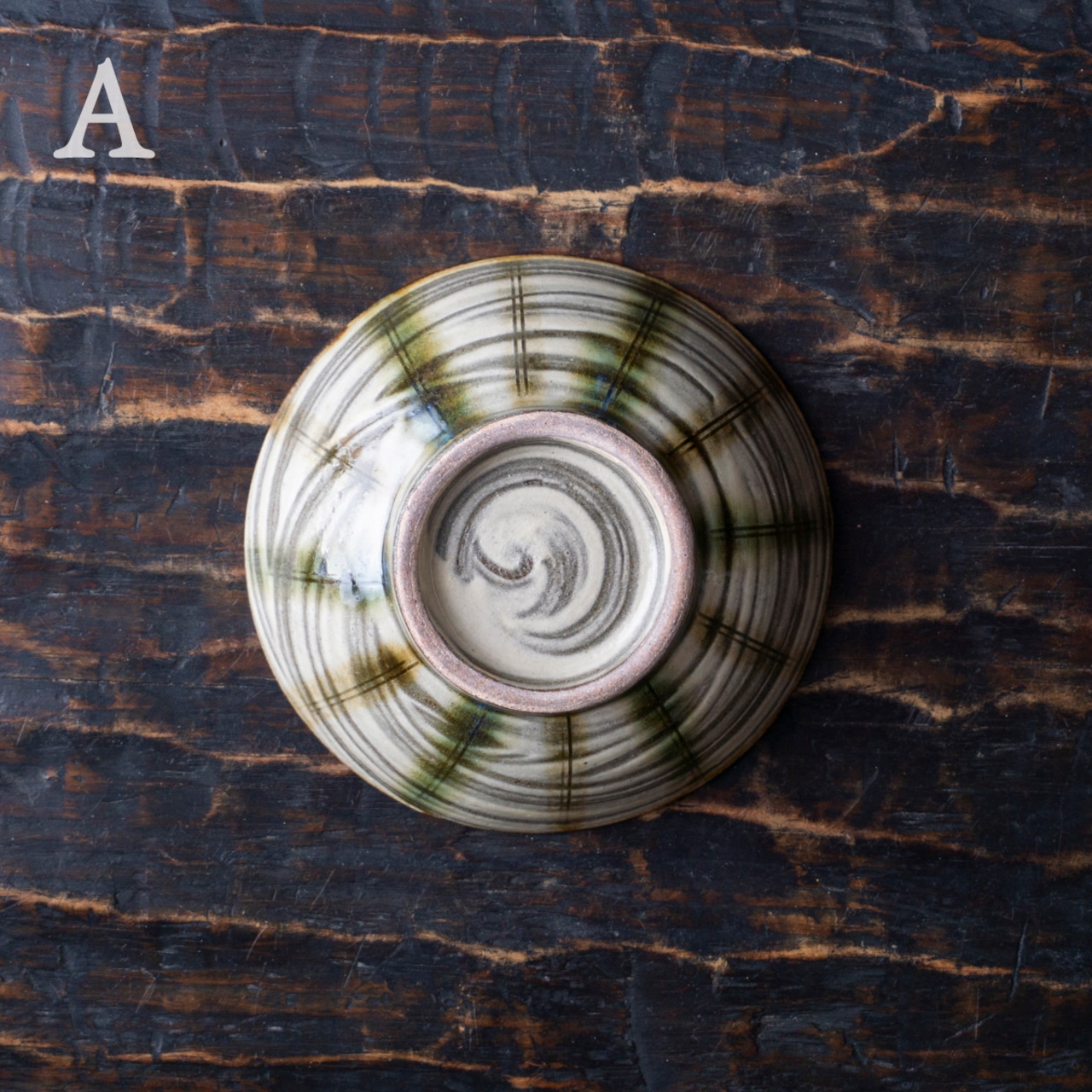 からや窯 登川均 浅鉢 5寸 刷毛目/線彫 緑 10