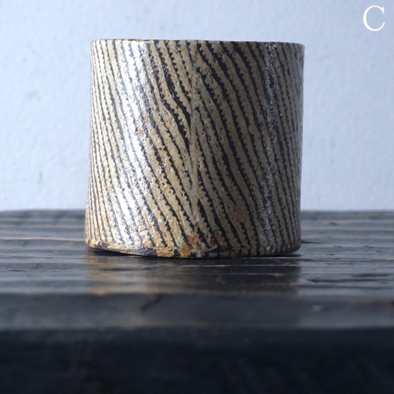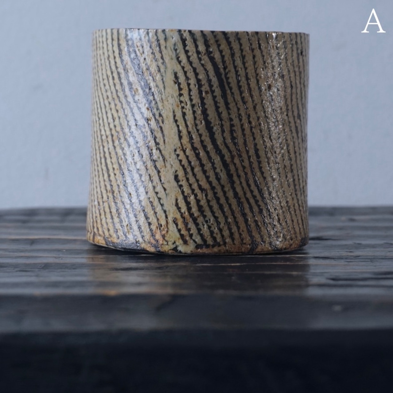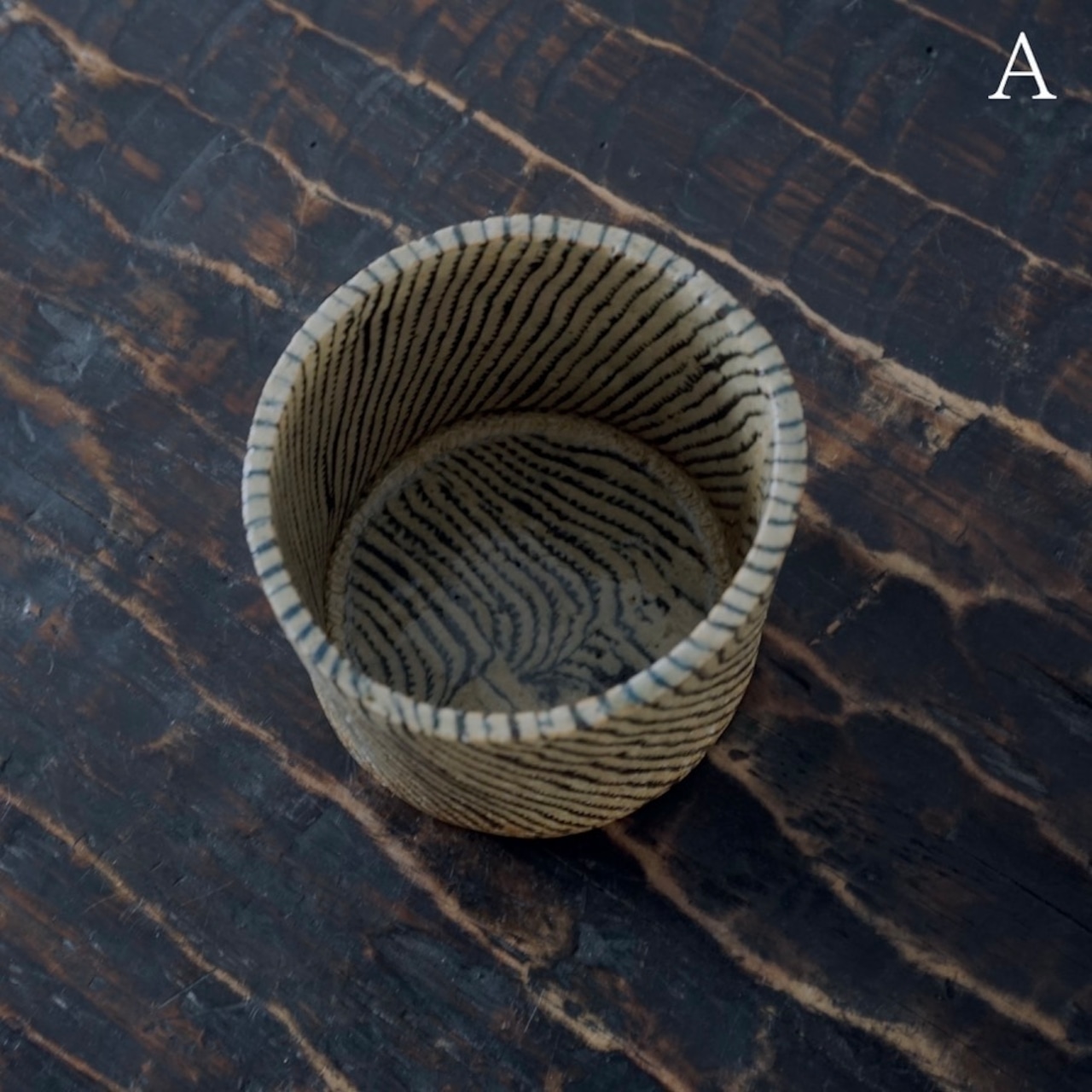 異なる色の粘土を練り合わせ模様をあらわす技法。
