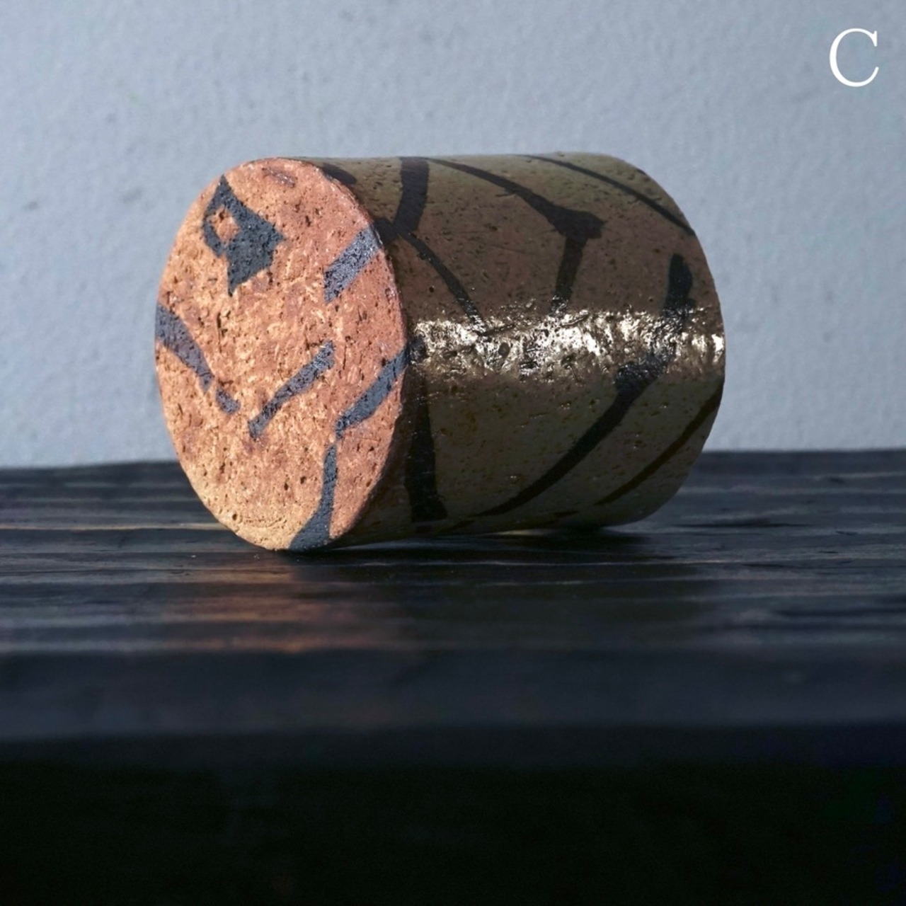 異なる色の粘土を練り合わせ模様をあらわす技法。