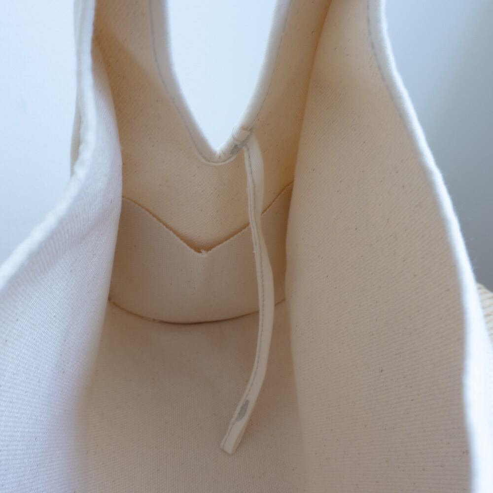 縫製の全ては外パイピングにしてありますから内側に縫い代が出ておらず角のある物もスッキリ収納できます。見ごろが1枚になっているので重たいものを入れたも不安がありません。